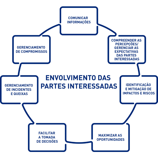 O gerenciamento das partes interessadas engloba um endereçamento ativo das expectativas dos indivíduos, grupos e empresas que podem impactar e ser impactados por atividades de uma organização. Ele envolve: identificação das partes interessadas; levantamento de requisitos, necessidades e expectativas das partes interessadas; e.