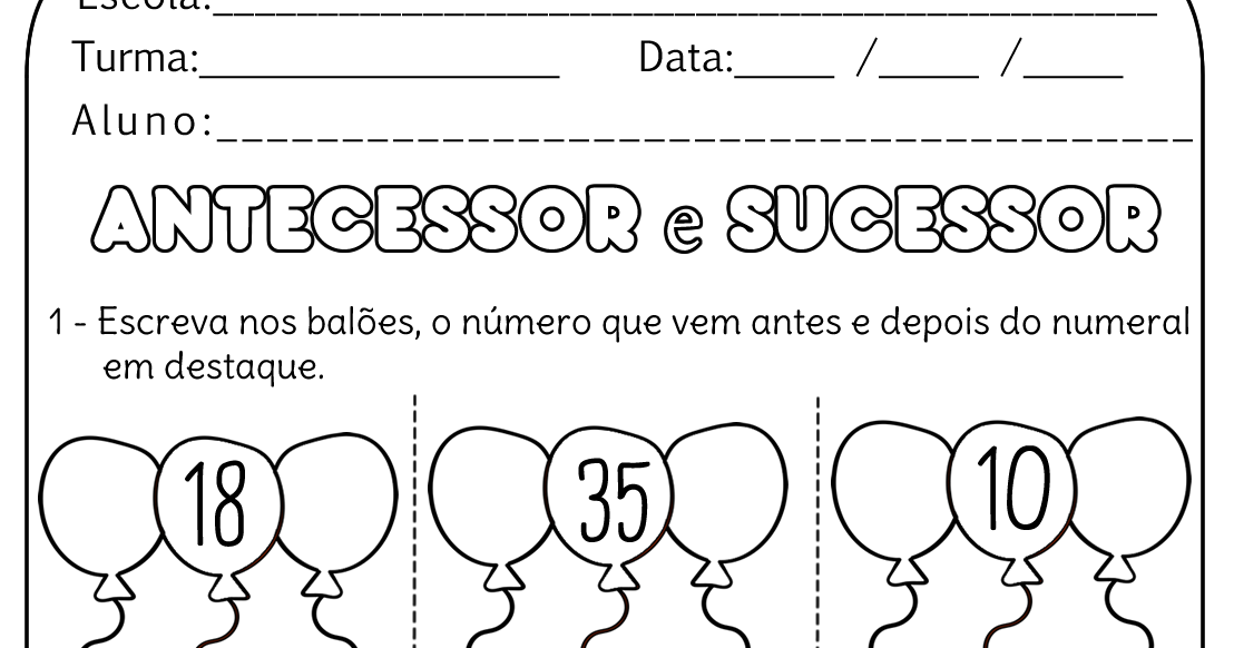 Atividade de Matemática Antecessores e Sucessores — SÓ ESCOLA